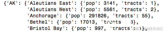 如果前面的字典保存在 countyData 中,下面的表达式求值结果如下: