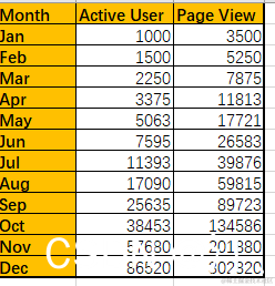 Active User 1000 1500 2250 3375 5063 7595 11393 17090 25635