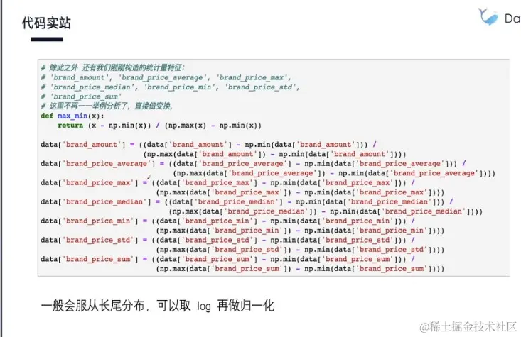 - 非线性变换,包括 log/ 平方/ 根号等;