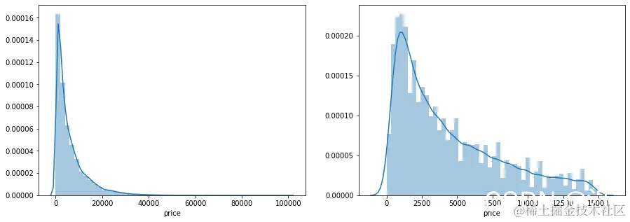 通过作图我们发现数据的标签(price)呈现长尾分布,不利于我们的建模预测。原因是很多模型都假设数据误差项符合正态分布,而长尾分布的数据违背了这一假设