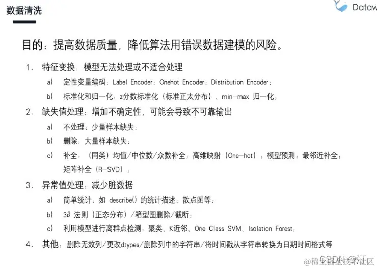 首先讲几个问题:数据清洗、特征选择作用和方法。
