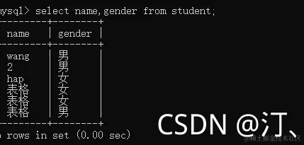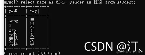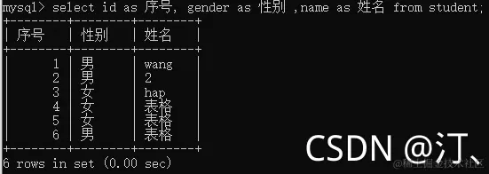 select id as 序号, gender as 性别 ,name as 姓名 from student;