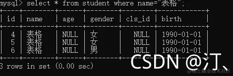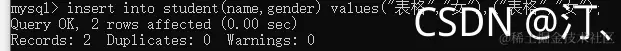 insert into students(name,gender) values("表格","女"),("表格","女")