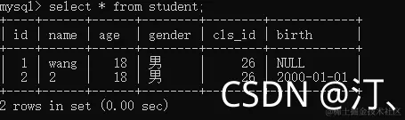 insert into student values(0,"2",18,"男",26,"2000-1-1");