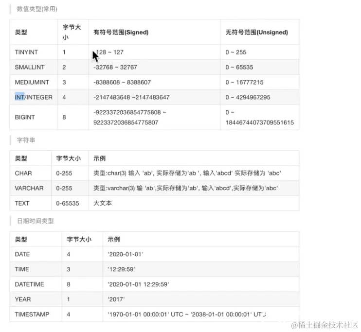 int unsigned 无符号类型;enum枚举,小数:decimal