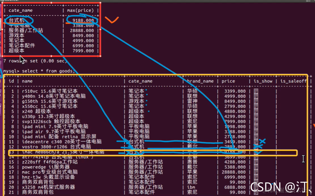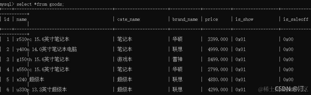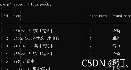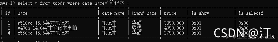 1查找超级本:select * from goods where cate_name='笔记本';