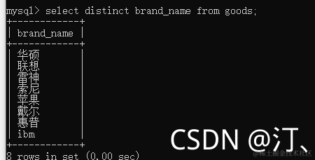 2查看品牌的分类:select distinct brand_name from goods;