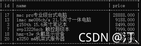 select id,name,price from goods where
