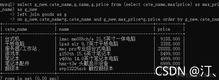 on g_new.cate_name=g.cate_name and g_new.max_price=g.price order by g_new.cate_name;