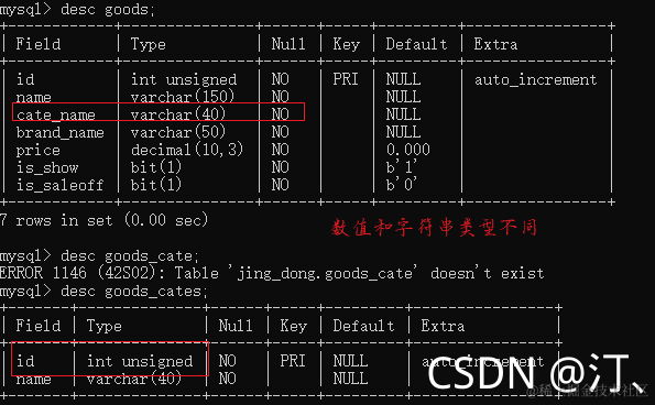 查询goods表中商品的种类