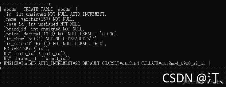 create table goods( id int unsigned primary key auto_increment not null,