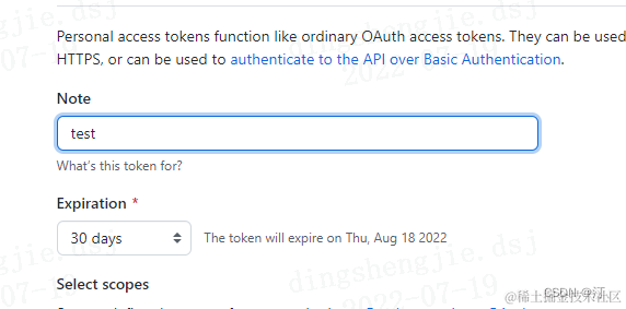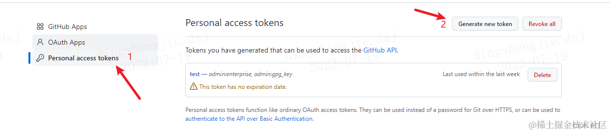 (2)Personal access tokens -> Generater new token