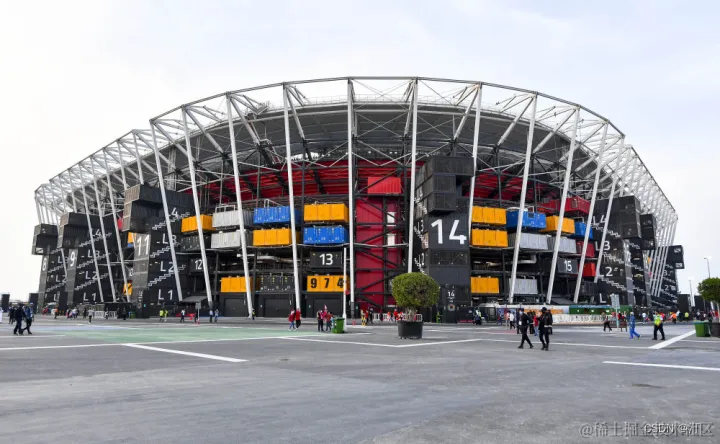 球场的搭建犹如搭积木一样,由各种颜色的海运集装箱和模块化钢材建成。“974” 不仅是卡塔尔的国际长途电话区号,也是用于建造这座球场所使用的海运集装箱的确切数量。