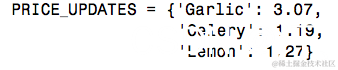 - 更灵活的解决方案,是将正确的价格信息保存在字典中,在编写代码时,利用这个数据结构,如果需要再次更新这个电子表格,只需要更新 PRICE_UPDATES字典,不用修改其他代码。