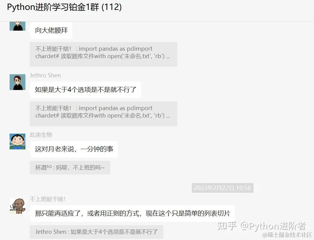 最后感谢粉丝【Jethro Shen】提问,感谢【不上班能干啥!】给出的思路和代码解析,感谢【eric】、【此类生物】、【冯诚】等人参与学习交流。