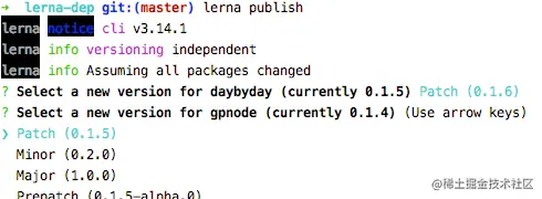 vue,babel都是用这种,在publish的时候,会在lerna.json文件里面"version": "0.1.5",依据这个号,进行增加,只选择一次,其他有改动的包自动更新版本号。