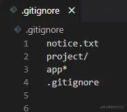 第一行,直接指定了一个文件名 notice.txt,意思就是相对路径下 notice.txt 将会被 git 忽略追踪。