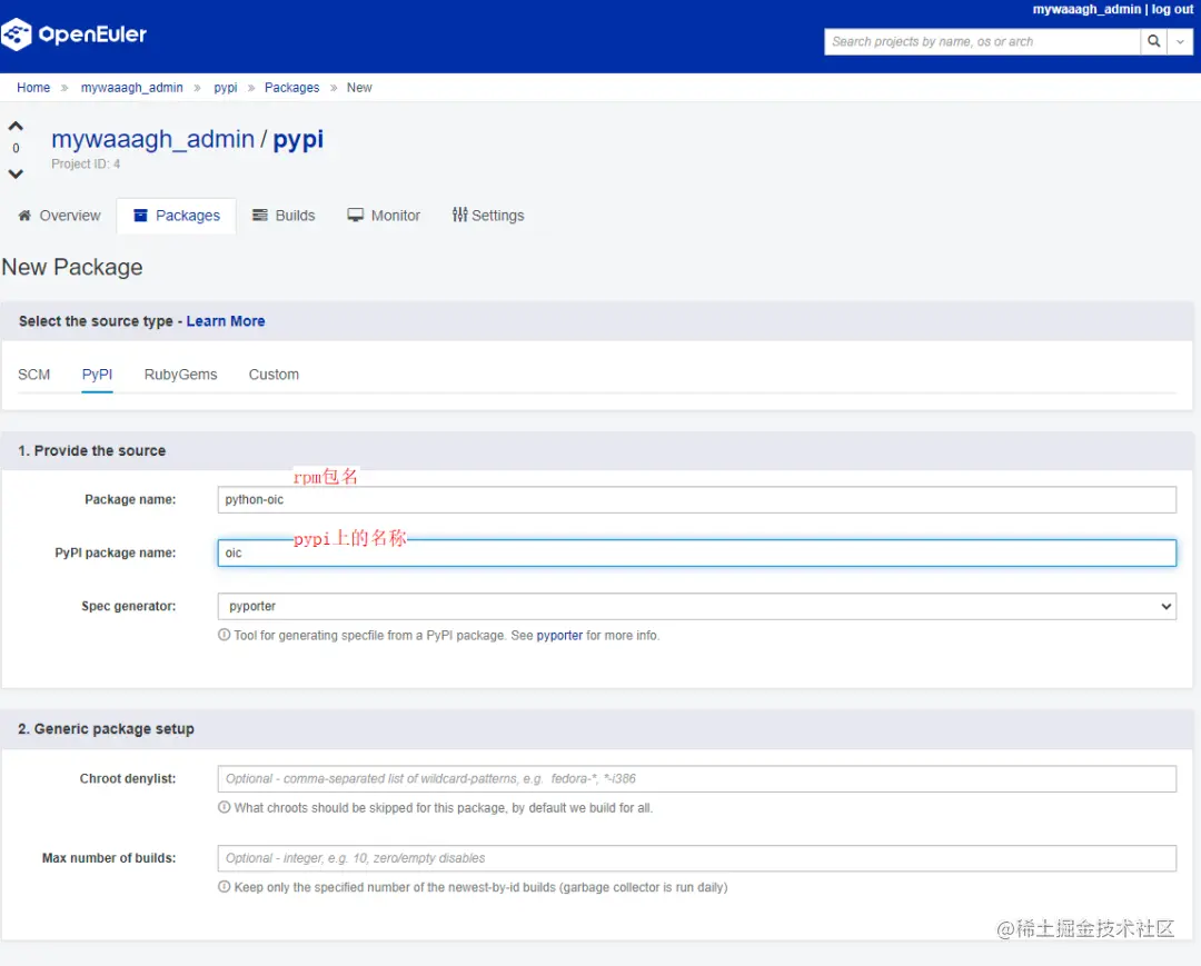 个人软件仓提供了快速打包pypi上软件包的能力,在添加软件包时,可以直接根据pypi上的包名添加。