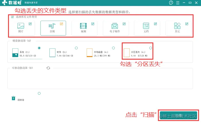 如果您没有备份数据,或者磁盘管理工具无法找回数据,那么您可以考虑使用数据恢复软件。这里,我们推荐一款高效可靠的数据恢复软件——数据蛙恢复专家。