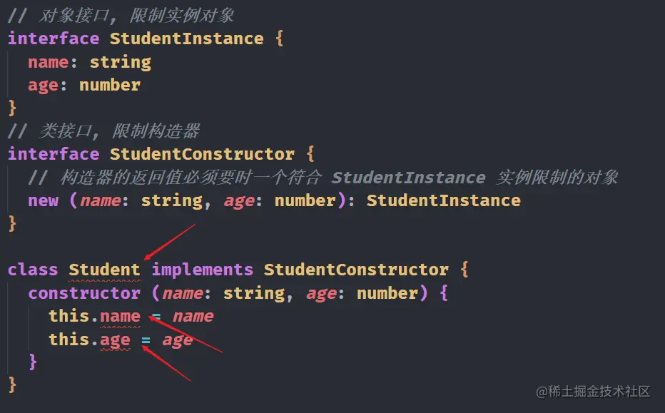 ○ StudentConstructor 接口, 看似是一个类接口, 但是其实只是限制了 new 关键字 和 返回值类型, 不能说他是一个类, 更像是一个函数, 所以我们那它去限制一个类显然不太好