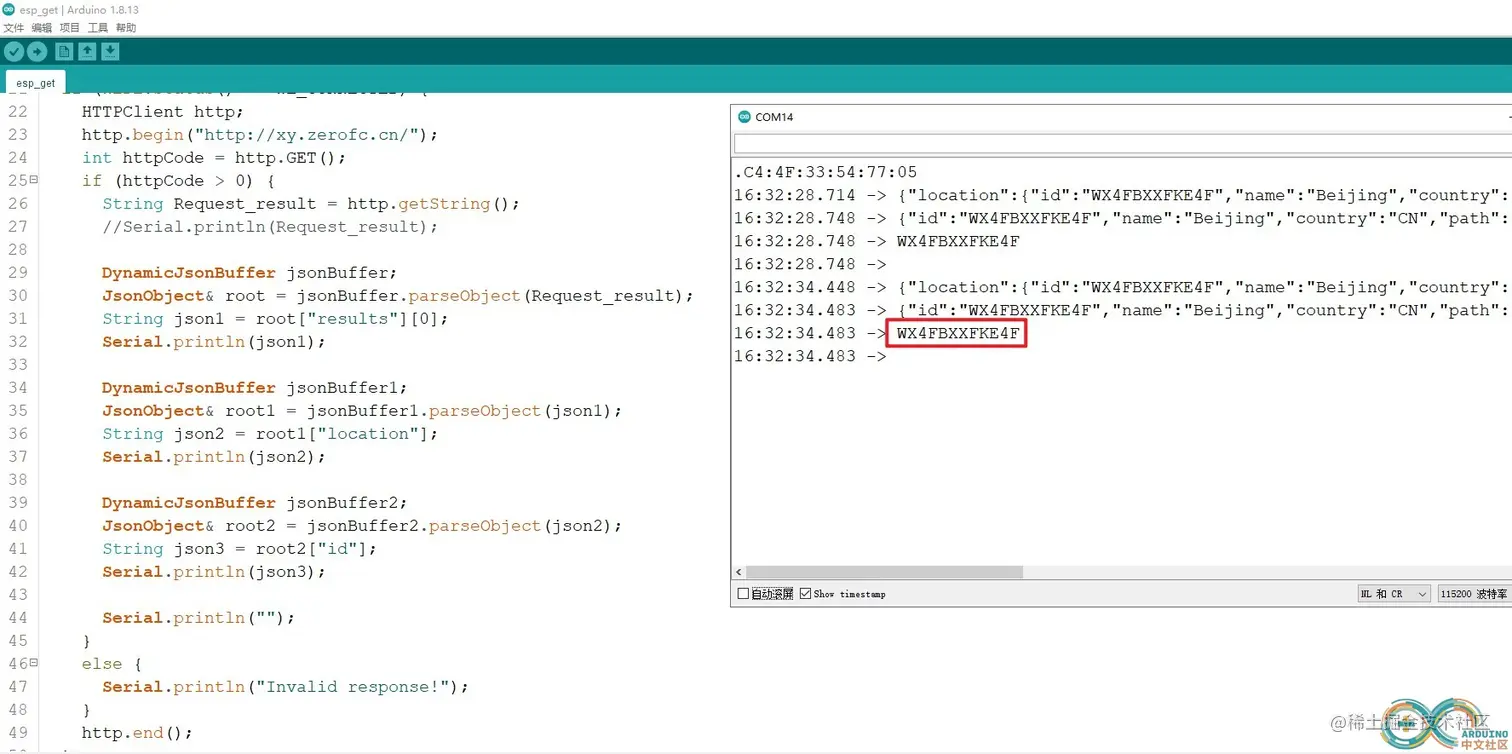 在推荐使用以上两个库外,我之前使用的ESP8266WiFi,请求成功后,通过JON库怎么也解析不成功,在经过一些踩坑和折腾后换成HTTPClient就可以了。以上两个库分别用来作为请求和JSON解析,在网上自行搜索哦,如果实在找不到可以在小编公众号留言,免费提供下载,安装方式是:将下载好的包复制到Arduino的libraries目录中即可。