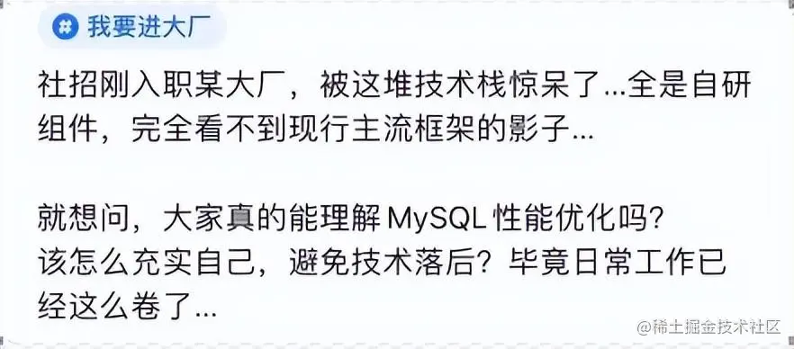 后台私信我的一个小伙伴,在大家苦于如何进大厂时,他已经成功上岸某大厂java工程师了,但是入职后,紧随而来的是技术掌握不够深入,跟不上团队节奏的焦虑!