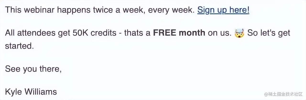 激励——这是一封客户服务团队为参加网络研讨会提供免费积分的邀请函: