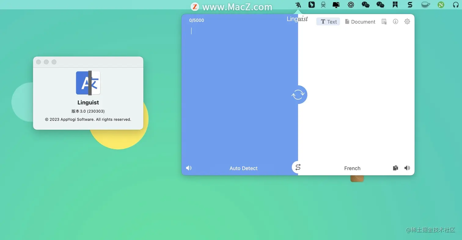 Linguist for Mac是一款简单好用的语言翻译软件,通过将鼠标光标指向一些(可能选择的)文本片段并按下Ctrl两次,Linguist(语言学家)会显示一个弹出窗口,其中包含鼠标光标所在的翻译权限。 如果你按option语言学家将用翻译替换当前选择的文本。 还可以翻译超过103种语言!