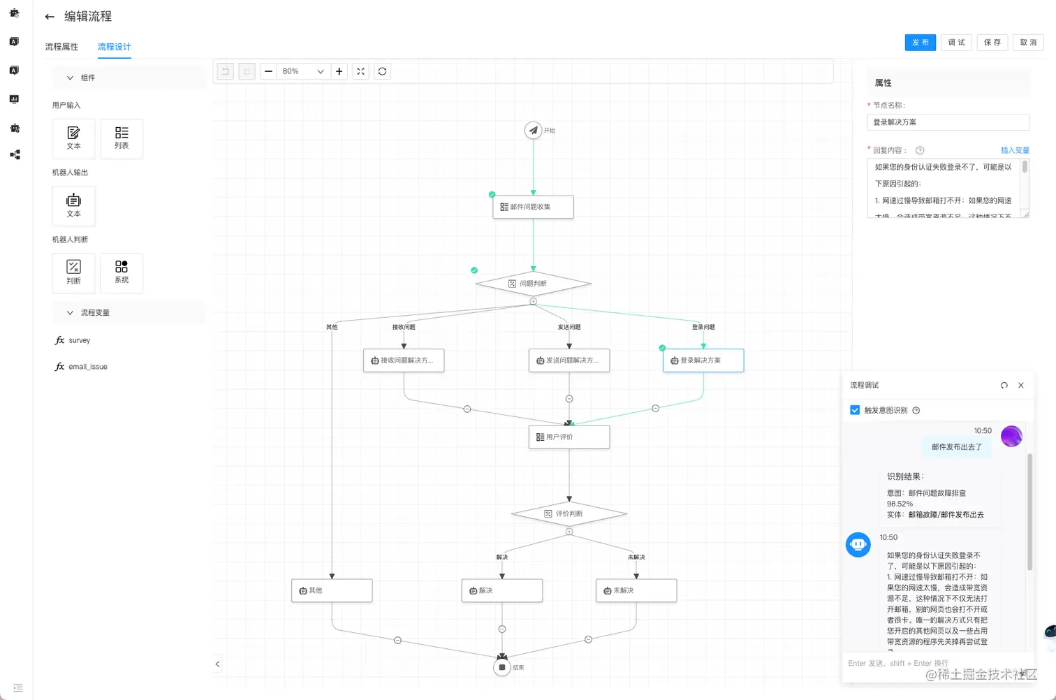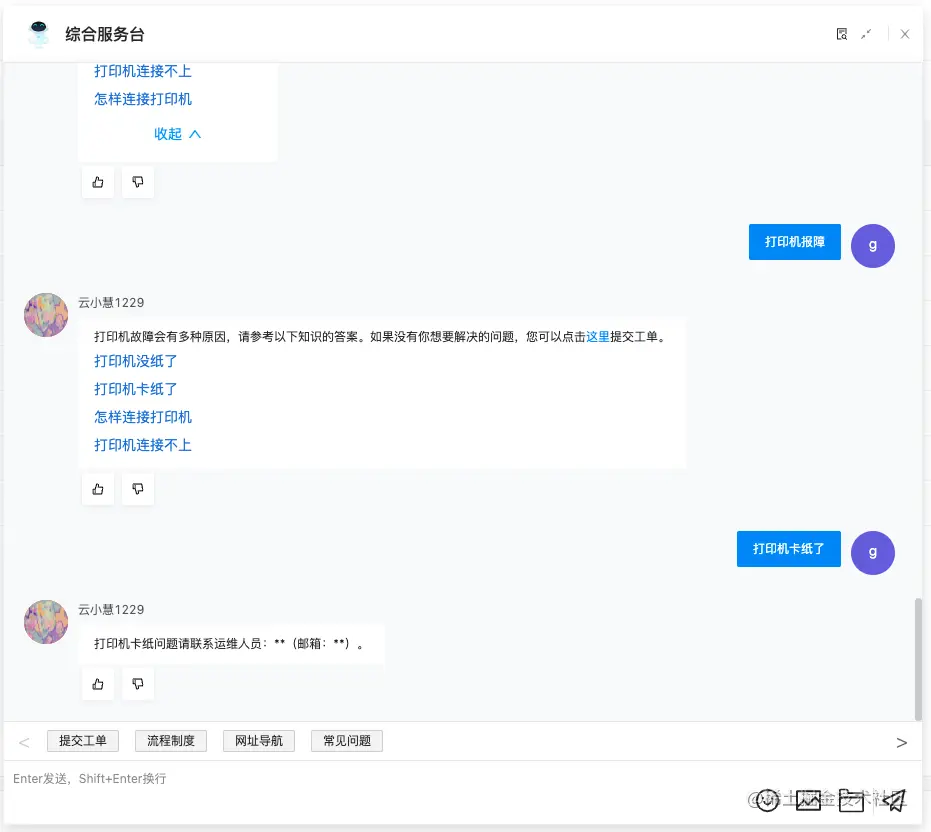 智能助理采用自然语言识别技术,用户即使使用的是简略的口语交流,智能助理也能自动补全那些句子之间“没有说出来的潜台词”,最终理解其中深刻的含义,以此帮助提高企业员工服务效率。此外,智能助理还支持企业员工自行配置对话流程,针对复杂的问题可以与用户进行多轮交互,满足复杂的任务型问答场景。