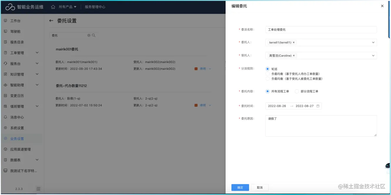 当企业员工因客观原因无法及时处理工单时,此时便可以将一段时间内的工单委托给他人处理,提高工单处理效率。
