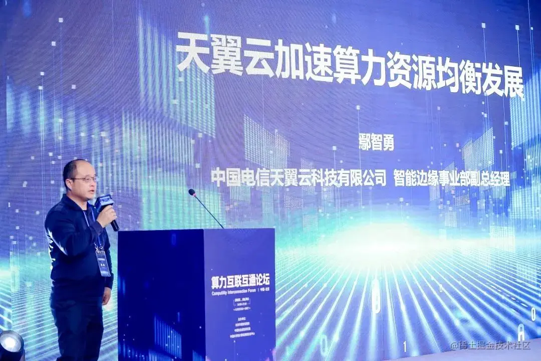 会上,天翼云科技有限公司智能边缘事业部副总经理鄢智勇发表了演讲。随着千行百业数字化转型提速,多元应用场景需要多样化算力。算力资源也正从集中部署方式向中心+边缘的多级化方向发展。为满足用户泛在接入、超低时延、属地响应等边缘业务需求,天翼云推出覆盖浅、深边缘的全场景系列边缘云产品,实现多级算力布局,推动算力普惠泛在。