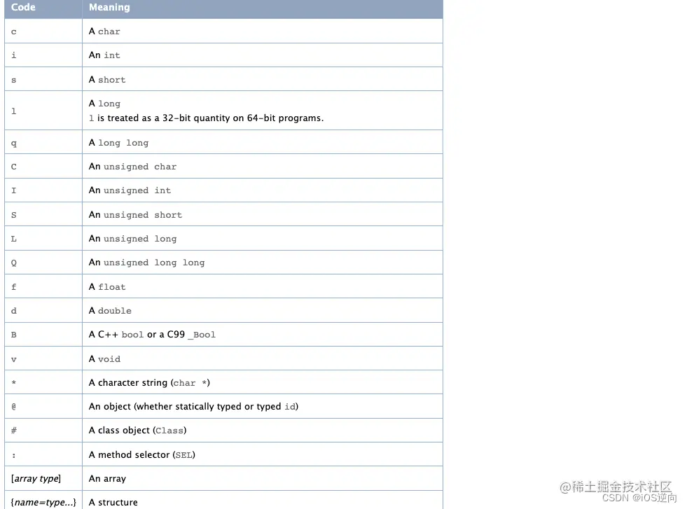 docurl = 'https://developer.apple.com/library/archive/documentation/Cocoa/Conceptual/ObjCRuntimeGuide/Articles/ocrtTypeEncodings.html'
