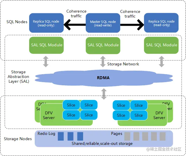 - 腾讯云 TDSQL-C。云原生数据库 TDSQL-C 作为腾讯云架构平台部核心数据库产品之一,致力于为云上ToB 用户和公司自研业务提供集高性能、低成本、大存储、低延迟、秒级扩缩容、极速回档、Serverless 化七大特性于一体的企业级数据库服务。其在被设计的时候以日志即数据库为理念,通过 Redo 日志还原出所有的数据;存储计算分离,把计算层相关的无效 IO 进行下沉、卸载,把日志下沉到存储层,实现计算层完全无状态化;主从之间抛弃了原来传统数据库的 Binlog 复制,采用更加高效的物理复制。