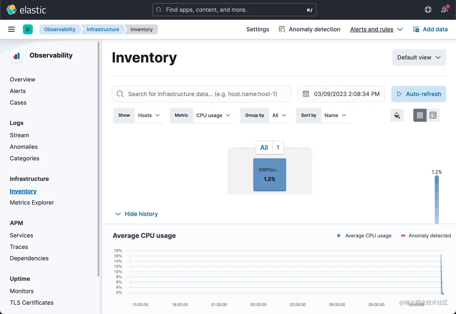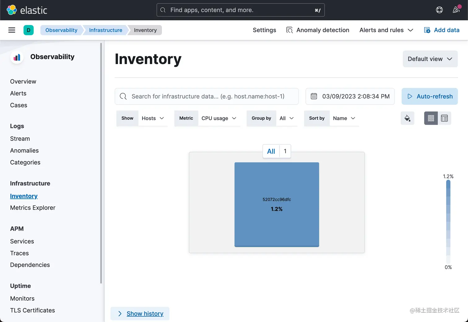 恭喜我们已经成功地在我们的集群上添加了 metricbeat 监控! 收集的数据可以显示在反映操作系统/主机指标的指标应用程序上,包括 CPU、内存、负载、网络、进程等。
