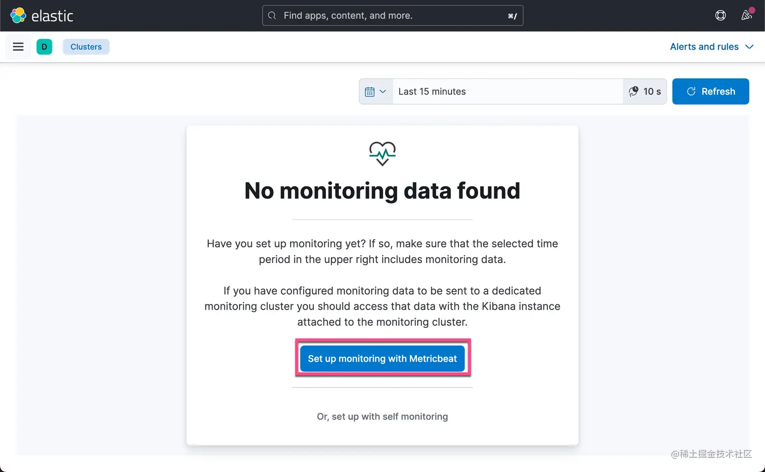 简单的意思是……没有可用的 Elasticsearch 监控数据 :(