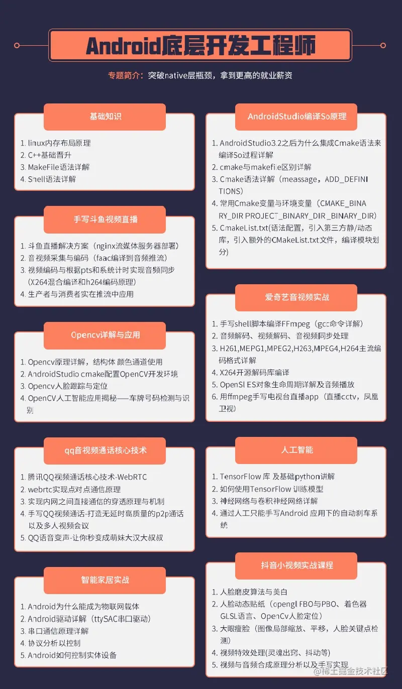 学习Android底层开发知识,掌握前沿技术,紧跟潮流。在人工智能的ai时代能够掌握先机
