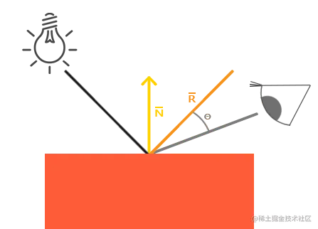 我们通过围绕法向量翻折入射光的方向来计算反射向量。然后我们计算反射向量与观察方向的角度差,它们之间夹角越小,镜面光的作用就越大。由此产生的效果就是,我们看向入射光在表面的反射方向时,会看到一点高光(注:这时镜面光最强)。