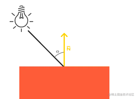 环境光照本身不能提供最有趣的结果,但是漫反射光照就能开始对物体产生显著的视觉影响了。漫反射光照使物体上与光线方向越接近的片段能从光源处获得更多的亮度。为了能够更好的理解漫反射光照,请看下图:
