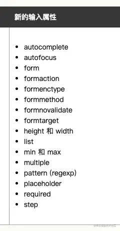 - 新增表单属性:autofocus、placeHolder、max、min等