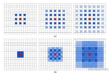 空洞卷积可看成是原始卷积更进一步的扩展,通过在原始卷积的基础上引入空洞率这个超参数,用于调节卷积核的间隔数量。比如,原始卷积核其空洞率为1,而对于空洞率为k的卷积则用0去填充空白的区域。