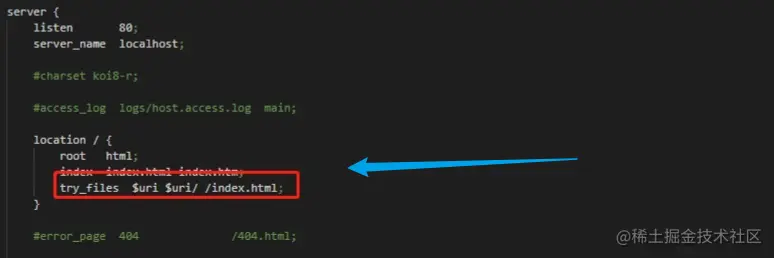 try_files $uri $uri/ /index.html;