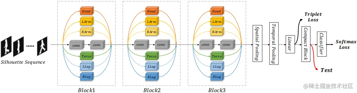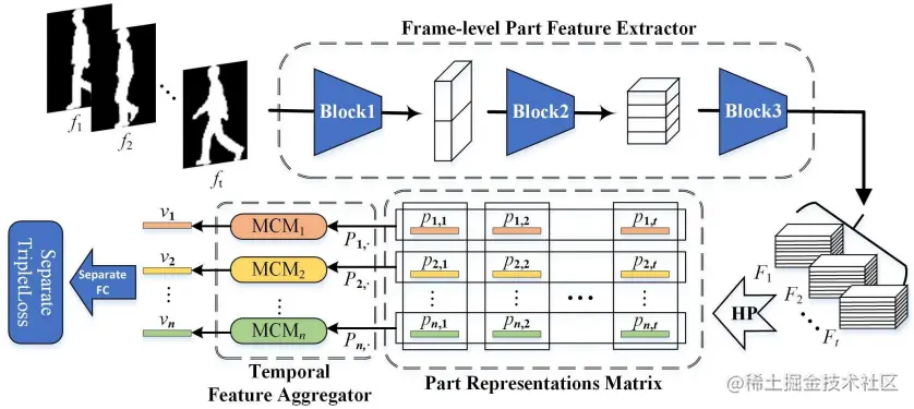 GaitPart则是发表在CVPR'2020上的方法,其详细探索了输入silhouette的局部细节,并通过微动捕捉模块对时间依赖性进行建模。