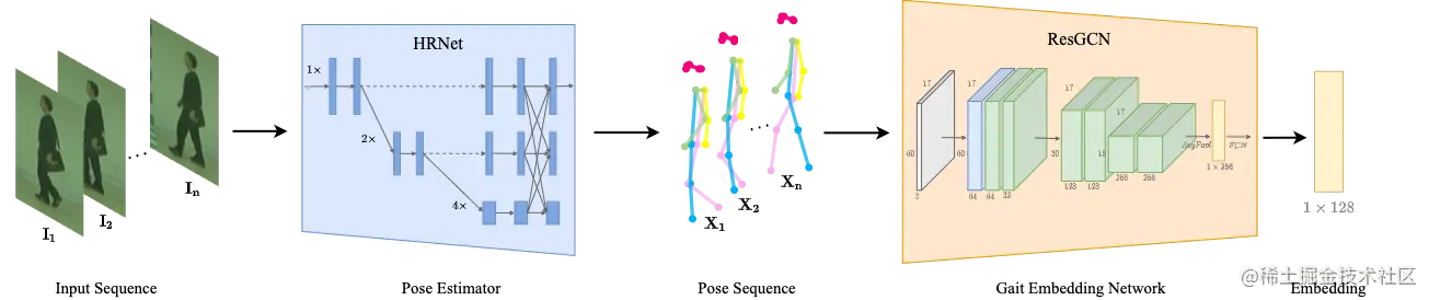 以GaitGraph为代表的的一些方法倾向于将估计的人体底层结构作为输入,例如2D/3D pose和SMPL模型。虽然这种方法对一些噪声因素具有天然的鲁棒性,例如携带和穿着,但遇到分辨率不够清晰的情况特别容易失效,缺乏实用性。