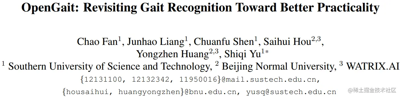 Title: OpenGait: Revisiting Gait Recognition Toward Better Practicality