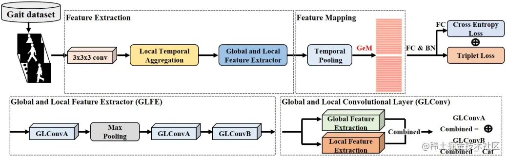 GaitGL发表于ICCV 2021,其认为基于空间全局信息的步态表示通常会忽略细节,同时基于局部区域的描述符无法捕获相邻部分之间的关系,从而开发了全局和局部卷积层来获取更详细的步态信息。