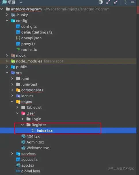 在pages/User下创建Register文件夹并创建index.tsx文件