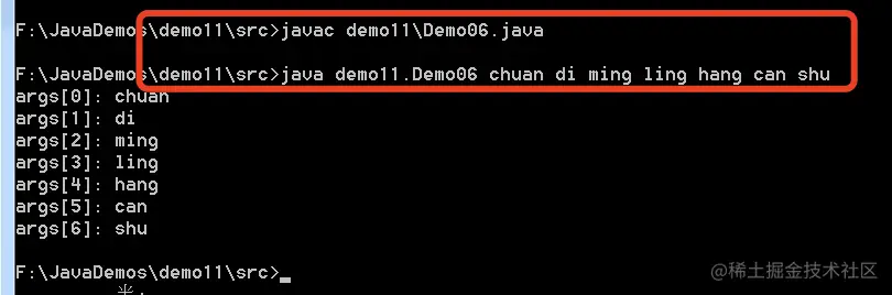 java demo11.Demo06 chuan di ming ling hang can shu