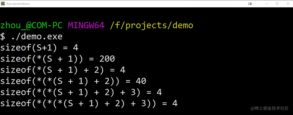 也就是说,数组名arr的类型其实是 int [5] ,因此 sizeof(arr) 的结果才会是20。