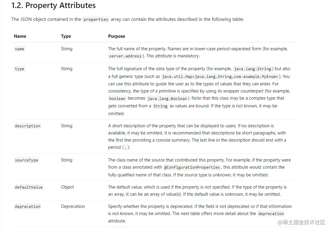 properties:为设置的提示属性,name为属性名称,type为属性类型,defaultValue为该属性默认值,description为属性描述。
