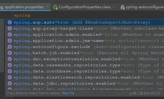可以看到,IDE已经自动帮我们提示了属性名称以及默认的值。嗯,爽了。